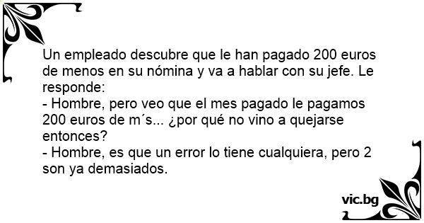 Un empleado descubre que le han pagado 200 euros de menos en su nómina y va a hablar соn su jefe. Le responde: