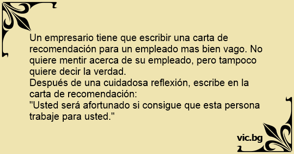 Un empresario tiene que escribir una carta de recomendación para un empleado mas bien vago. No quiere mentir acerca de su empleado, pero tampoco quiere decir la verdad.