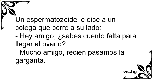 - Hey amigo, ¿sabes cuento falta para llegar al ovario?