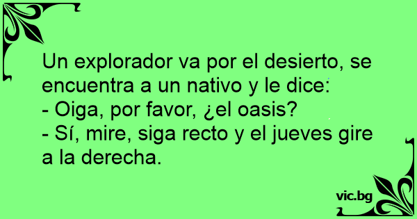 Un explorador va por el desierto, se encuentra a un nativo y le dice: