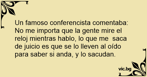 No me importa que la gente mire el reloj mientras hablo, lo que me saca de juicio es que se lo lleven al oído para saber si anda, y lo sacudan.