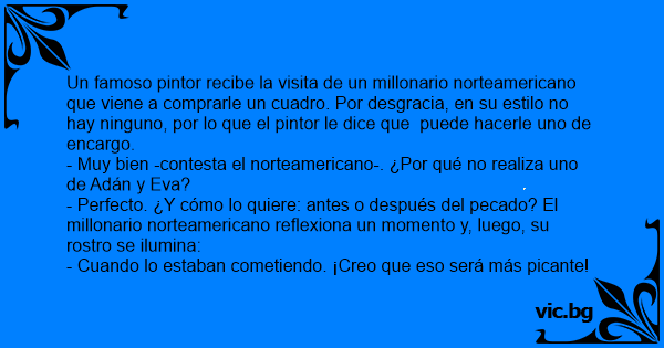 - Muy bien -contesta el norteamericano-. ¿Por qué no realiza uno de Adán y Eva?