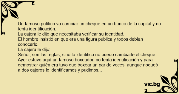 Un famoso político va cambiar un cheque en un banco de la capital y no tenía identificación.