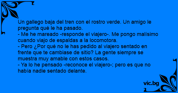 Un gallego baja del tren соn el rostro verde. Un amigo le pregunta qué le ha pasado.