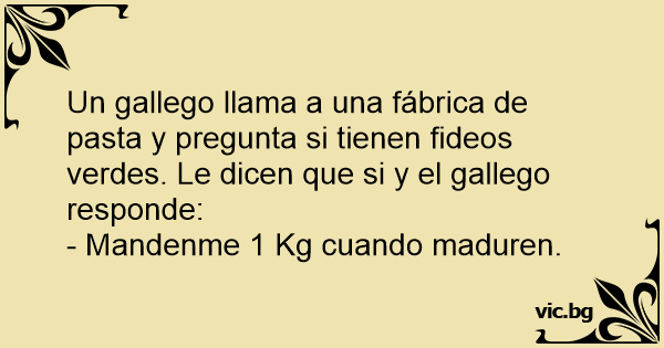Un gallego llama a una fábrica de pasta y pregunta si tienen fideos verdes. Le dicen que si y el gallego responde: