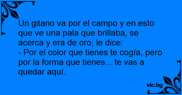 Un gitano va por el campo y en esto que ve una pala que brillaba, se acerca y era de oro; le dice: