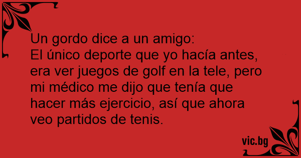 El único deporte que yo hacía antes, era ver juegos de golf en la tele, pero mi médico me dijo que tenía que hacer más ejercicio, así que ahora veo partidos de tenis.