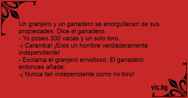 Un granjero y un ganadero se enorgullecen de sus propiedades. Dice el ganadero: