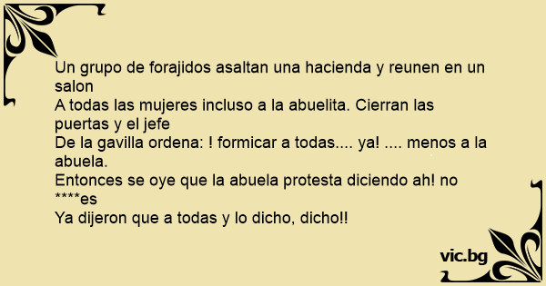 De la gavilla ordena: ! formicar a todas.... ya! .... menos a la abuela.