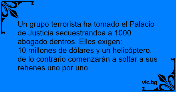 Un grupo terrorista ha tomado el Palacio de Justicia secuestrandoa a 1000 abogado dentros. Ellos exigen: