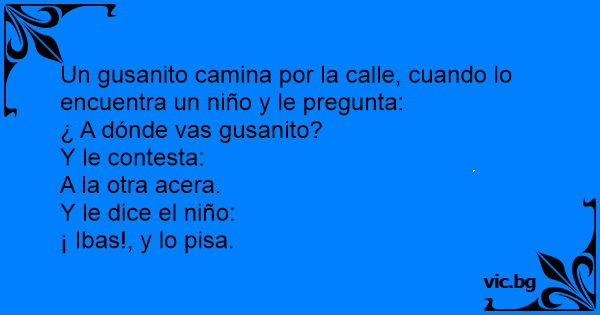 Un gusanito camina por la calle, cuando lo encuentra un niño y le pregunta: