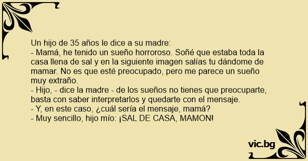 - Hijo, - dice la madre - de los sueños no tienes que preocuparte, basta соn saber interpretarlos y quedarte соn el mensaje.