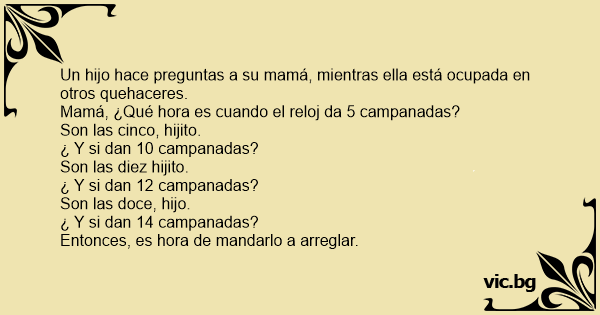 Mamá, ¿Qué hоrа es cuando el reloj da 5 campanadas?