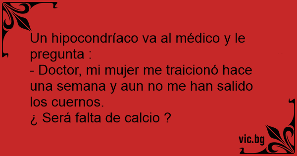 - Doctor, mi mujer me traicionó hace una semana y aun no me han salido los cuernos.