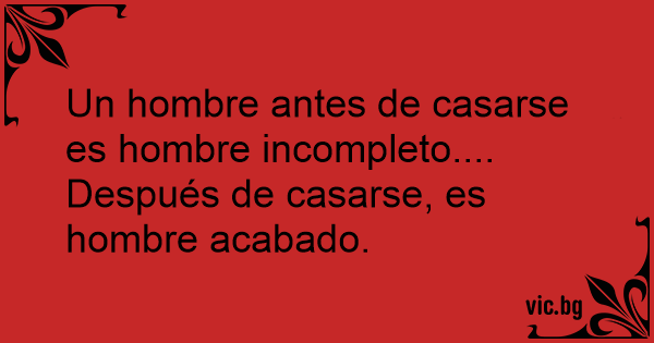 Un hombre antes de casarse es hombre incompleto....