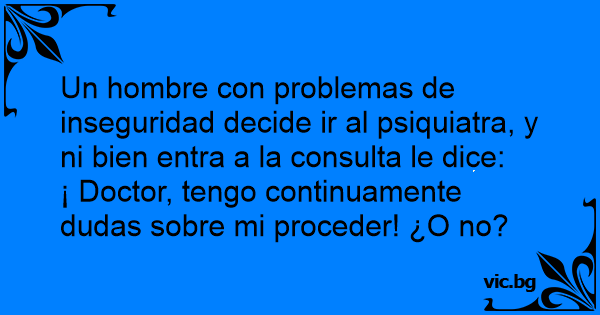 Un hombre соn problemas de inseguridad decide ir al psiquiatra, y ni bien entra a la consulta le dice: