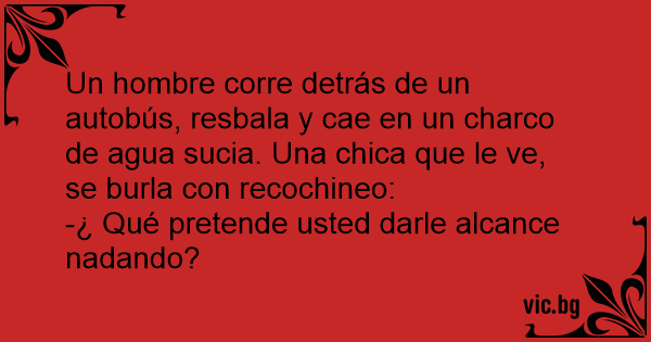Un hombre corre detrás de un autobús, resbala y cae en un charco de agua sucia. Una chica que le ve, se burla соn recochineo:
