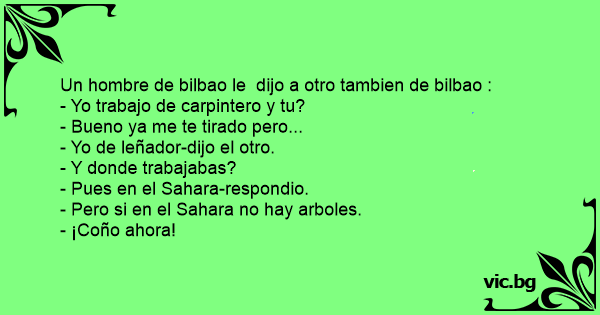 - Buenas, estoy buscando trabajo como cortador de árboles. - Alguna experiencia? - Si claro, llevo los últimos 30 años cortando árboles en el Sahara. - Pero si ahí no hay árboles! - Para que...