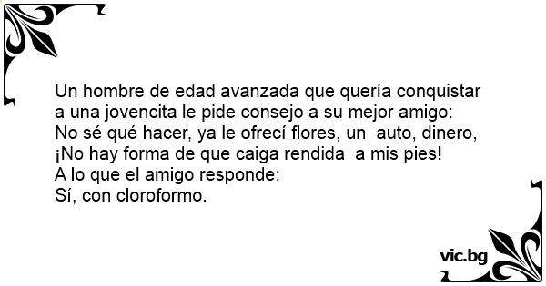 Un hombre de edad avanzada que quería conquistar a una jovencita le pide consejo a su mejor amigo: