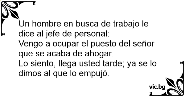 Vengo a ocupar el puesto del señor que se acaba de ahogar.