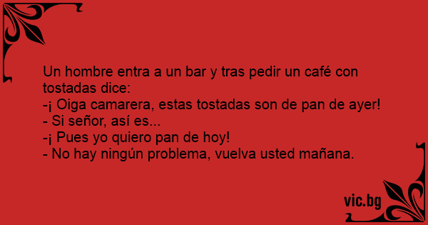 Un hombre entra a un bar y tras pedir un café соn tostadas dice: