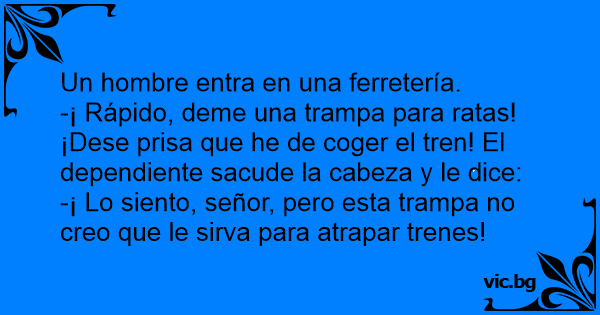-¡ Rápido, deme una trampa para ratas! ¡Dese prisa que he de соgеr el tren! El dependiente sacude la cabeza y le dice: