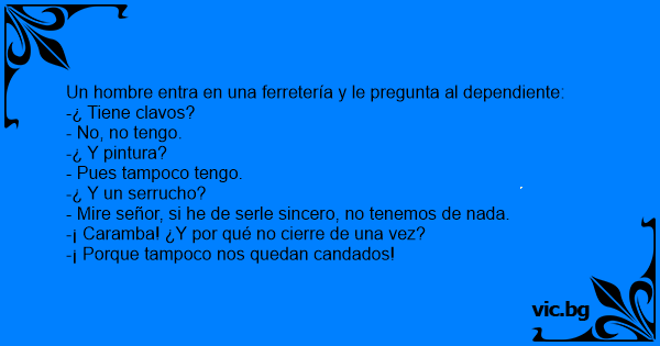 Un hombre entra en una ferretería y le pregunta al dependiente: