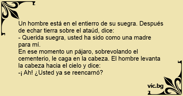 Un hombre está en el entierro de su suegra. Después de echar tierra sobre el ataúd, dice: