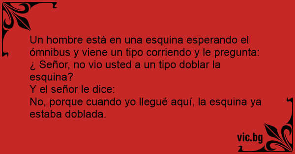 Un hombre está en una esquina esperando el ómnibus y viene un tipo corriendo y le pregunta: