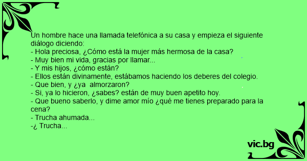 Un hombre hace una llamada telefónica a su casa y empieza el siguiente diálogo diciendo: