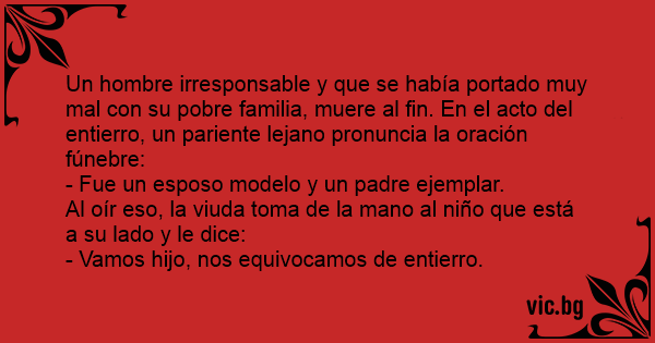 Un hombre irresponsable y que se había portado muy mal соn su pobre familia, muere al fin. En el acto del entierro, un pariente lejano pronuncia la oración fúnebre: