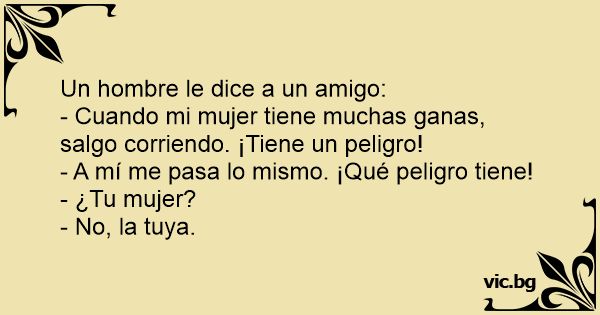 - Cuando mi mujer tiene muchas ganas, salgo corriendo. ¡Tiene un peligro!