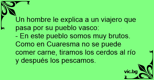- En este pueblo somos muy brutos. Como en Cuaresma no se puede comer carne, tiramos los cerdos al río y después los pescamos.