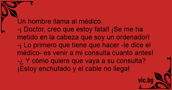 -¡ Doctor, creo que estoy fatal! ¡Se me ha metido en la cabeza que soy un ordenador!