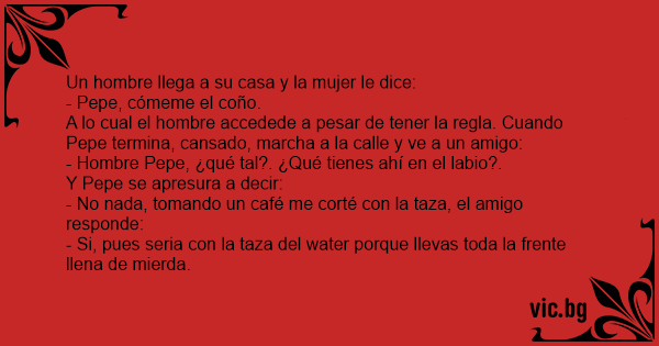 A lo cual el hombre accedede a pesar de tener la regla. Cuando Pepe termina, cansado, marcha a la calle y ve a un amigo:
