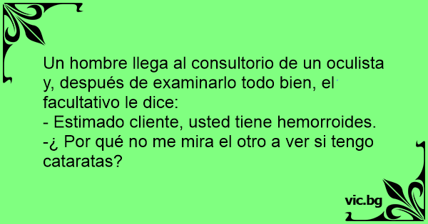 Un hombre llega al consultorio de un oculista y, después de examinarlo todo bien, el facultativo le dice: