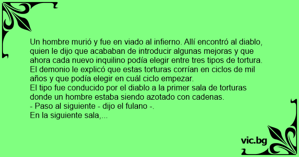 El demonio le explicó que estas torturas corrían en ciclos de mil años y que podía elegir en cuál ciclo empezar.