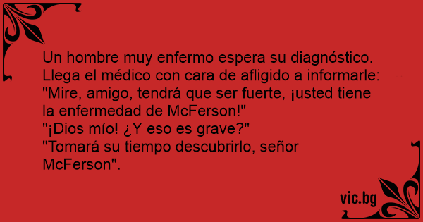 "Mire, amigo, tendrá que ser fuerte, ¡usted tiene la enfermedad de McFerson!"