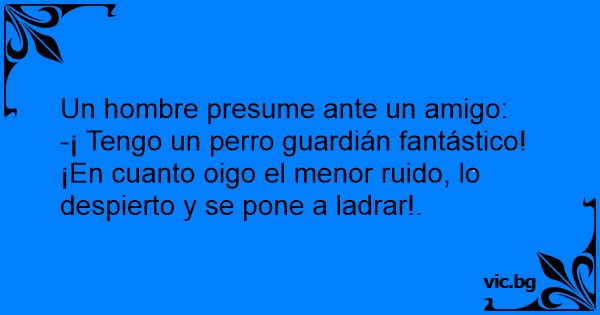 -¡ Tengo un реrrо guardián fantástico! ¡En cuanto oigo el menor ruido, lo despierto y se pone a ladrar!.