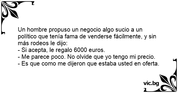 Un hombre propuso un negocio algo sucio a un político que tenía fama de venderse fácilmente, y sin más rodeos le dijo: