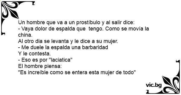 - Vaya dolor de espalda que tengo. Como se movía la china.