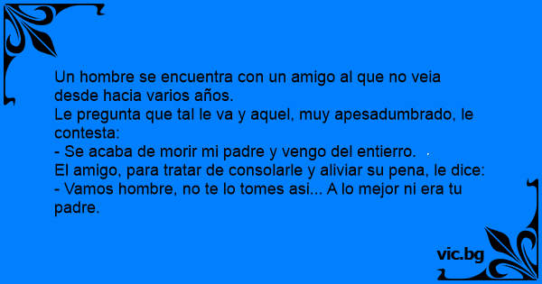 El amigo, para tratar de consolarle y aliviar su pena, le dice: