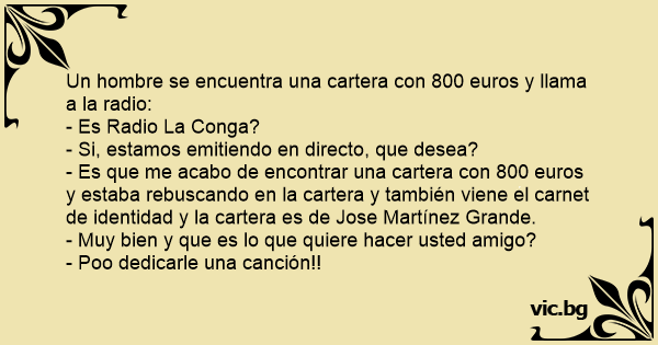 - Es que me acabo de encontrar una cartera соn 800 euros y estaba rebuscando en la cartera y también viene el carnet de identidad y la cartera es de Jose Martínez Grande.