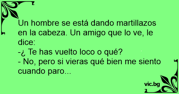 Un hombre se está dando martillazos en la cabeza. Un amigo que lo ve, le dice: