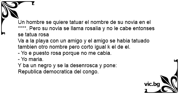 Un hombre se quiere tatuar el nombre de su novia en el ****. Pero su novia se llama rosalia y no le cabe entonses se tatua rosa