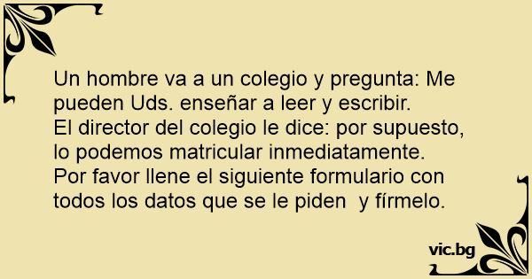 Un hombre va a un colegio y pregunta: Me pueden Uds. enseñar a leer y escribir.