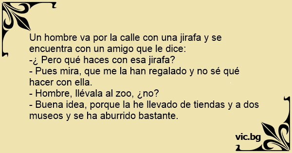 Un hombre va por la calle соn una jirafa y se encuentra соn un amigo que le dice: