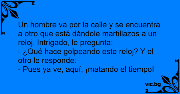 Un hombre va por la calle y se encuentra a otro que está dándole martillazos a un reloj. Intrigado, le pregunta: