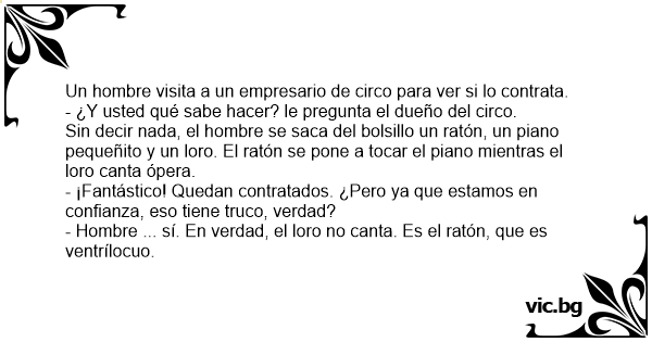 - Hombre ... sí. En verdad, el loro no canta. Es el ratón, que es ventrílocuo.