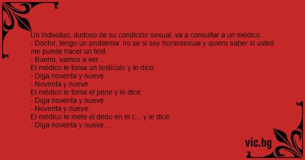 - Doctor, tengo un problema: no se si soy homosexual y quiero saber si usted me puede hacer un test.